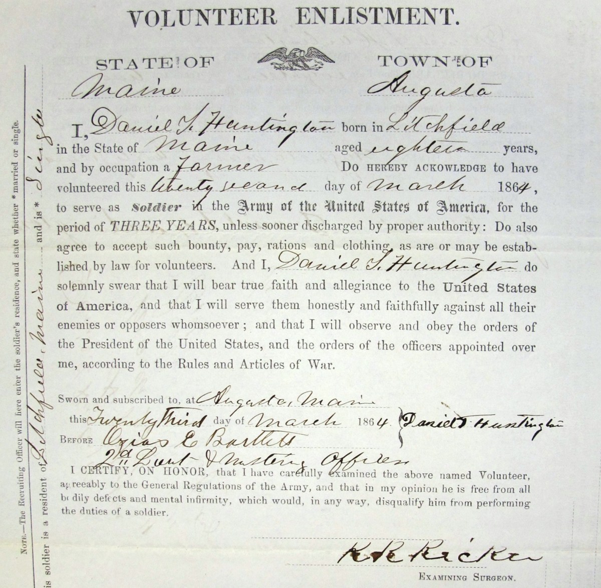 Enlistmentcrop Published January 30, 2018 at 2226 × 2179 in Family History ← Previous My great-grandfather’s enlistment papers, from the Maine State Archives.