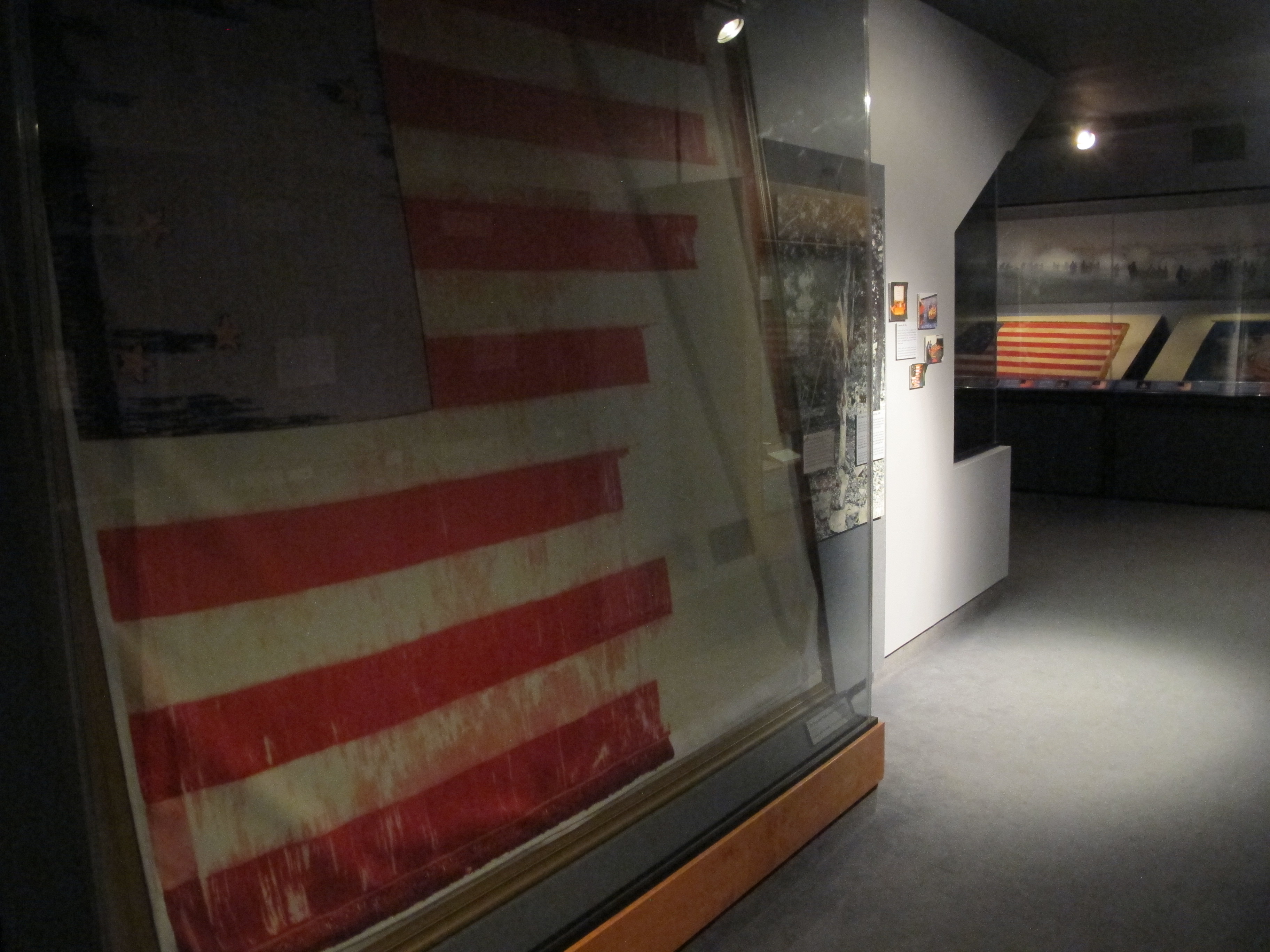 IMG_1763 Published January 4, 2018 at 3648 × 2736 in Flag Day Next → This is the national flag that the 20th Maine had on Little Round Top during the battle of Gettysburg. It’s on display in the Maine State Museum.