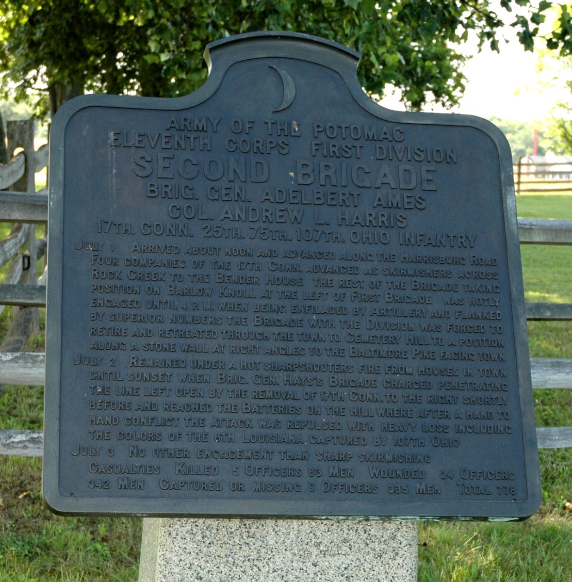Ames brigade marker Published May 2, 2018 at 1272 × 1295 in Ames at Gettysburg ← Previous The marker for Ames’s brigade on Barlow Knoll (Tom Huntington photo).